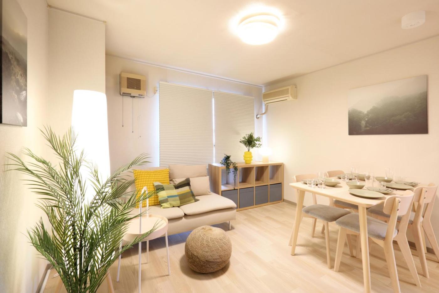 One-Bedroom Apartment. This air-conditioned apartment is comprised of 1 living room, 1 separate bedroom and 1 bathroom with a bath. In the well-equipped kitchen, guests will find a stovetop, a refrigerator, kitchenware and a microwave. The apartment offers a washing machine, a dining area, an electric kettle, a sofa and a flat-screen TV. The unit offers 2 beds.