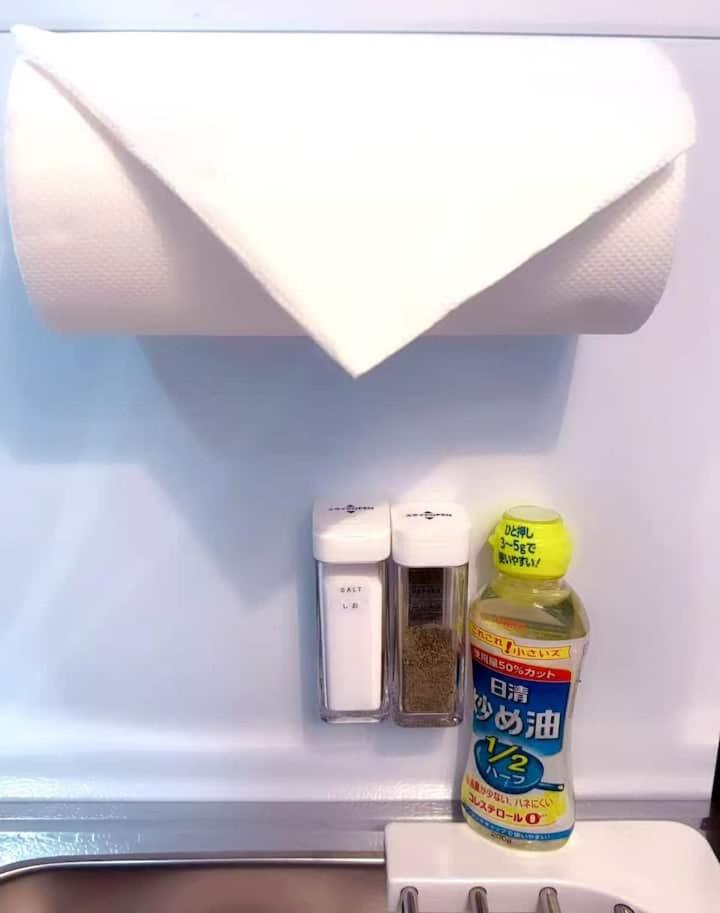 One-Bedroom Apartment. The air-conditioned apartment has 1 bedroom and 1 bathroom with a shower and a bidet. Guests can make meals in the kitchenette that is fitted with a stovetop, a refrigerator, kitchenware and an oven. The apartment offers a washing machine, tatami and a tea and coffee maker and chocolate is offered for guests. The unit has 2 beds. ;