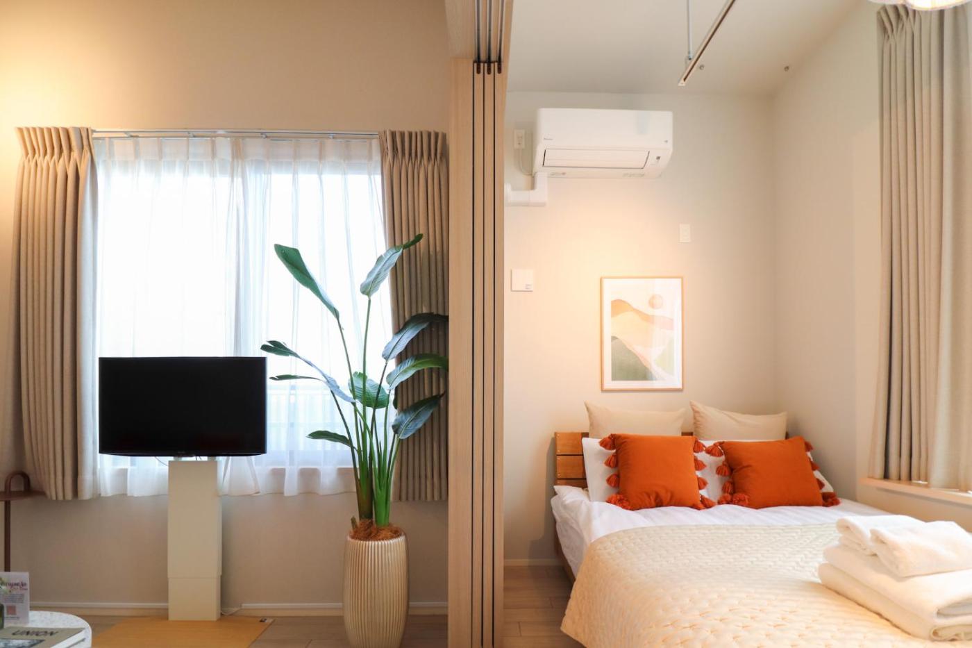 One-Bedroom Apartment - Non-Smoking. This apartment is comprised of 1 living room, 1 separate bedroom and 1 bathroom with a bath and free toiletries. Guests can make meals in the kitchen that is fitted with a stovetop, a refrigerator, kitchenware and an oven. The apartment offers air conditioning, a washing machine, a seating area, a dining area and a flat-screen TV with streaming services. The unit offers 2 beds.