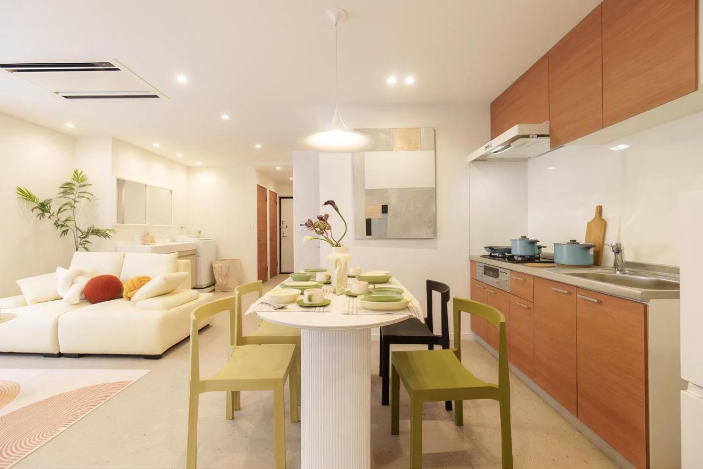 Three-Bedroom Apartment. Guests will have a special experience as this apartment features a hot tub. This spacious apartment is comprised of 1 living room, 3 separate bedrooms and 2 bathrooms with a walk-in shower and free toiletries. In the fully equipped kitchen, guests will find a stovetop, a refrigerator, kitchenware and a microwave. The air-conditioned apartment offers a flat-screen TV with cable channels, a washing machine, a dining area, an electric kettle as well as city views. The unit offers 5 beds.