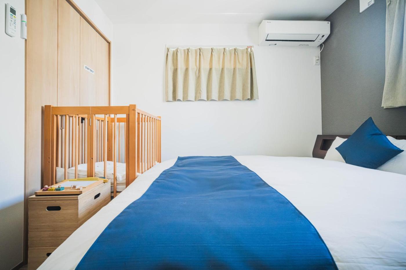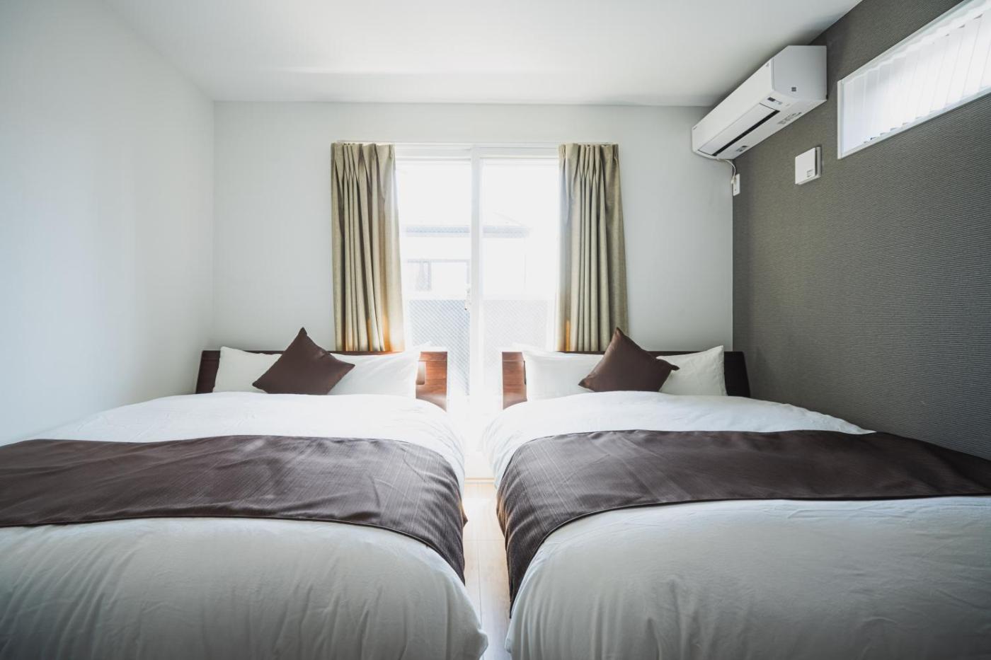 Three-Bedroom Apartment. This spacious apartment comes with 1 living room, 3 separate bedrooms and 2 bathrooms with a bath and free toiletries. Guests can make meals in the kitchen that features a stovetop, a refrigerator, kitchenware and an oven. The apartment features air conditioning, a washing machine, tatami, a tea and coffee maker, as well as a flat-screen TV. The unit has 6 beds.