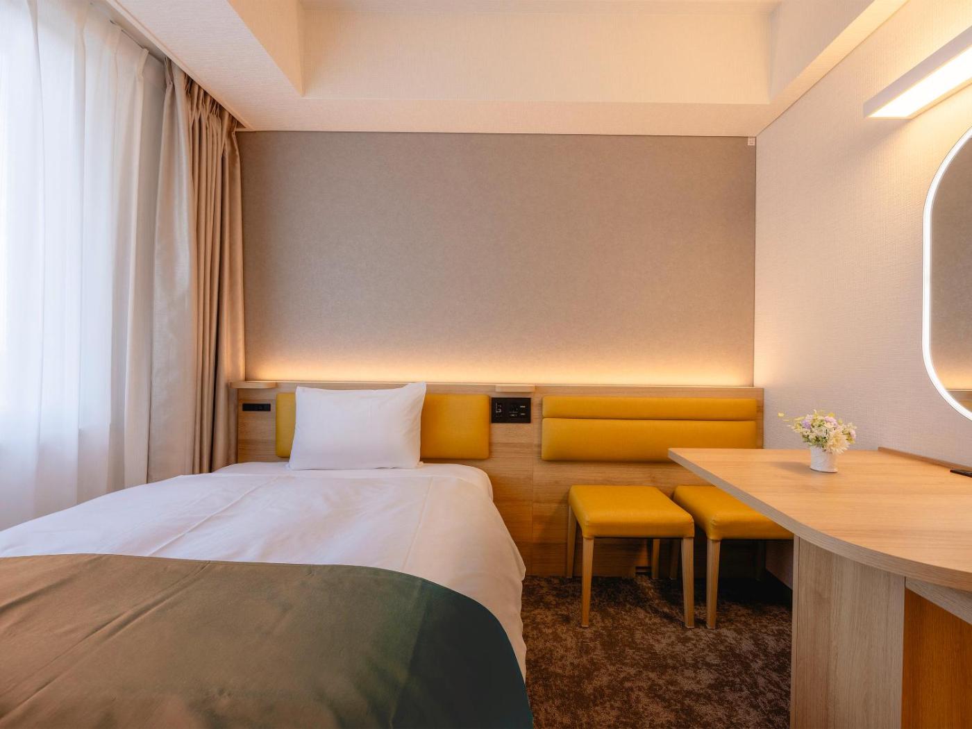 Standard Double Room - Non-Smoking. Features a small double bed and city views. ;